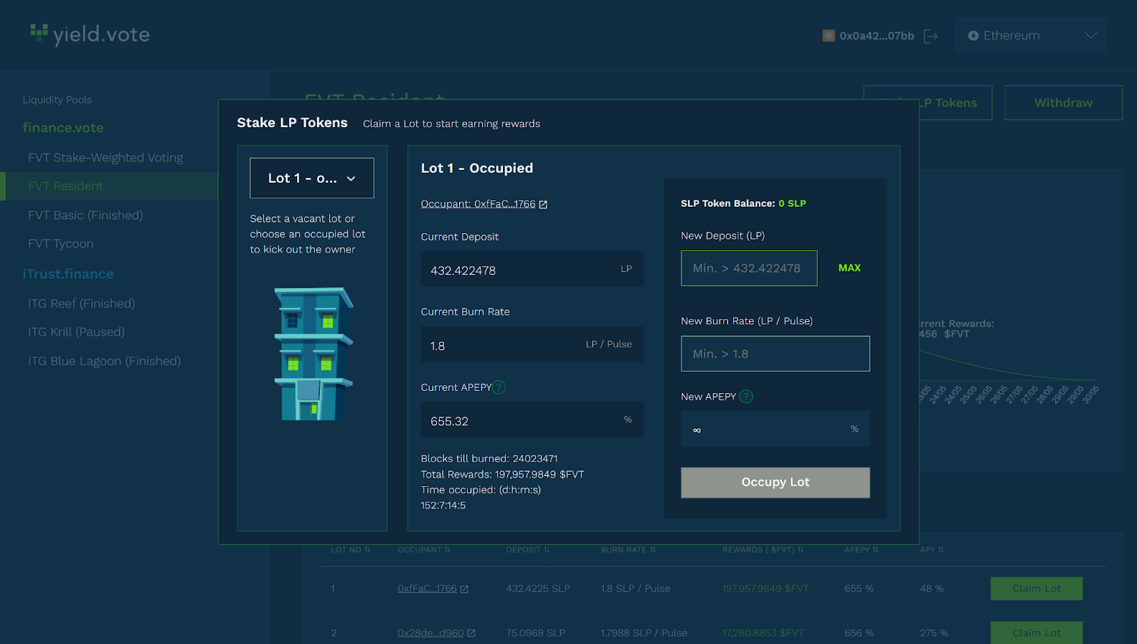 Next, press the “Occupy Lot” button and approve the transaction from your wallet’s popup.