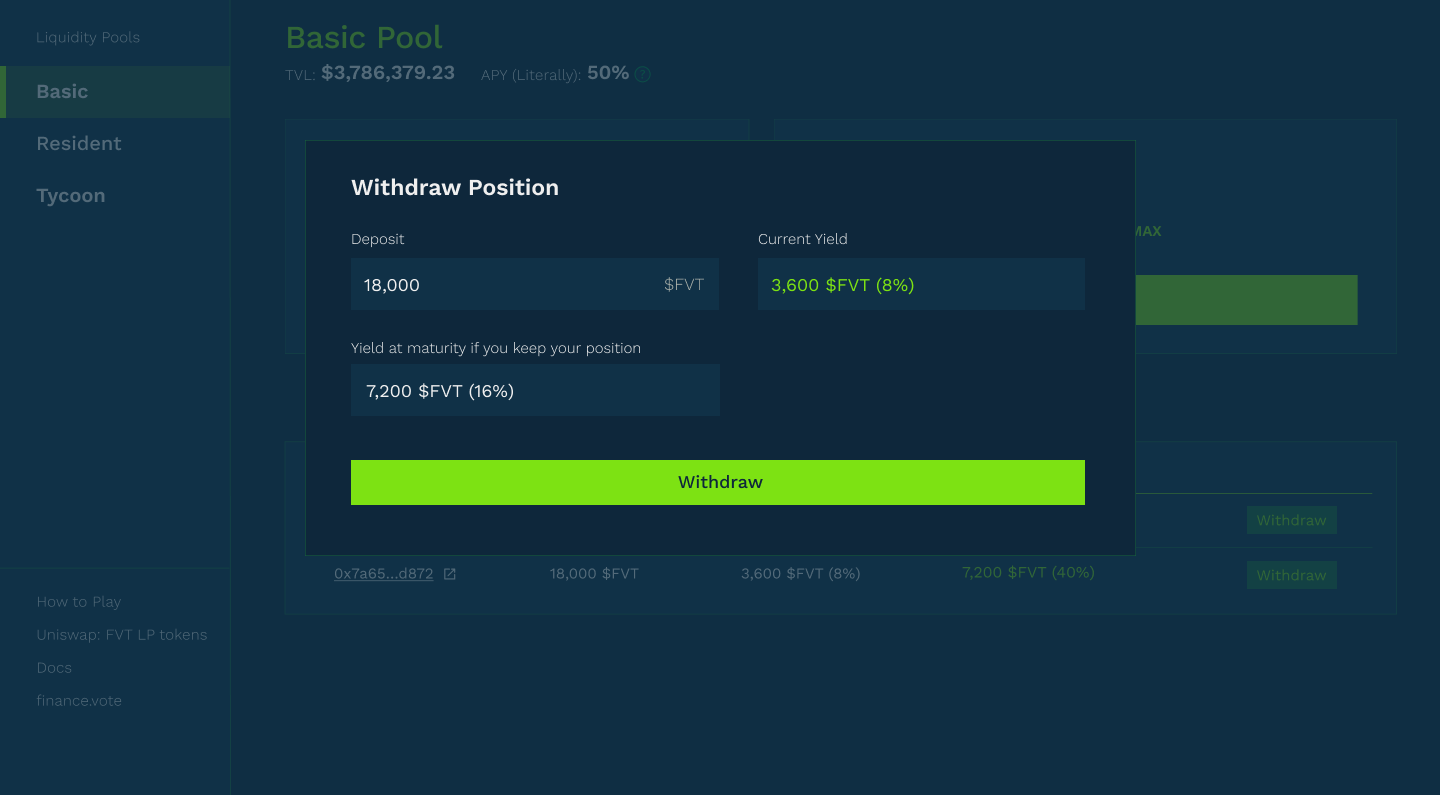WITHDRAWING A POSITION ON BASIC POOL