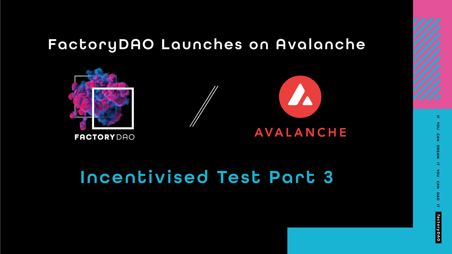 If you’d like to take part in the FactoryDAO Incentivised test for the dApps launching on AVAX, then join the FactoryDAO discord and contact a metasherpa or admin to get a tester role.